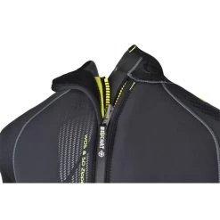 – Fermeture : Grand zip d’aisance au niveau de la glotte équipé d’un soufflet tendu Elaskin intégrant une coupe anatomique sur la monopièce sans cagoule pour un meilleur confort. Grand Zip dorsal « G-Lock plus » avec curseur métal & sous-patte au profil embossé Water Dam System pour une étanchéité accrue (brevet Beuchat) Zip poignet & cheville. Renforcement du néoprène à l’extrémité de tous les Zips pour éviter tout risque de déchirure si le plongeur force en tirant sur les curseurs.